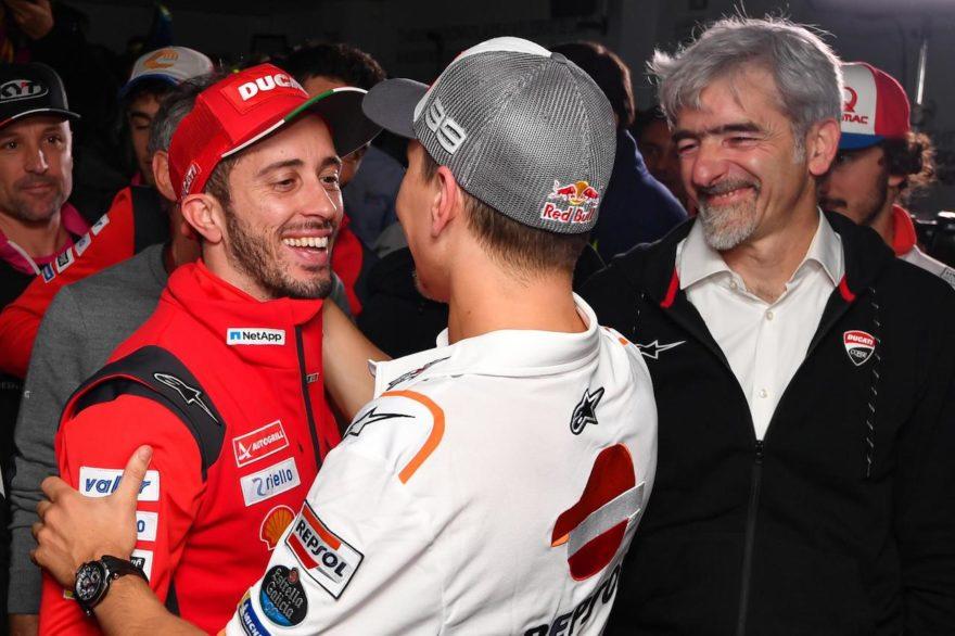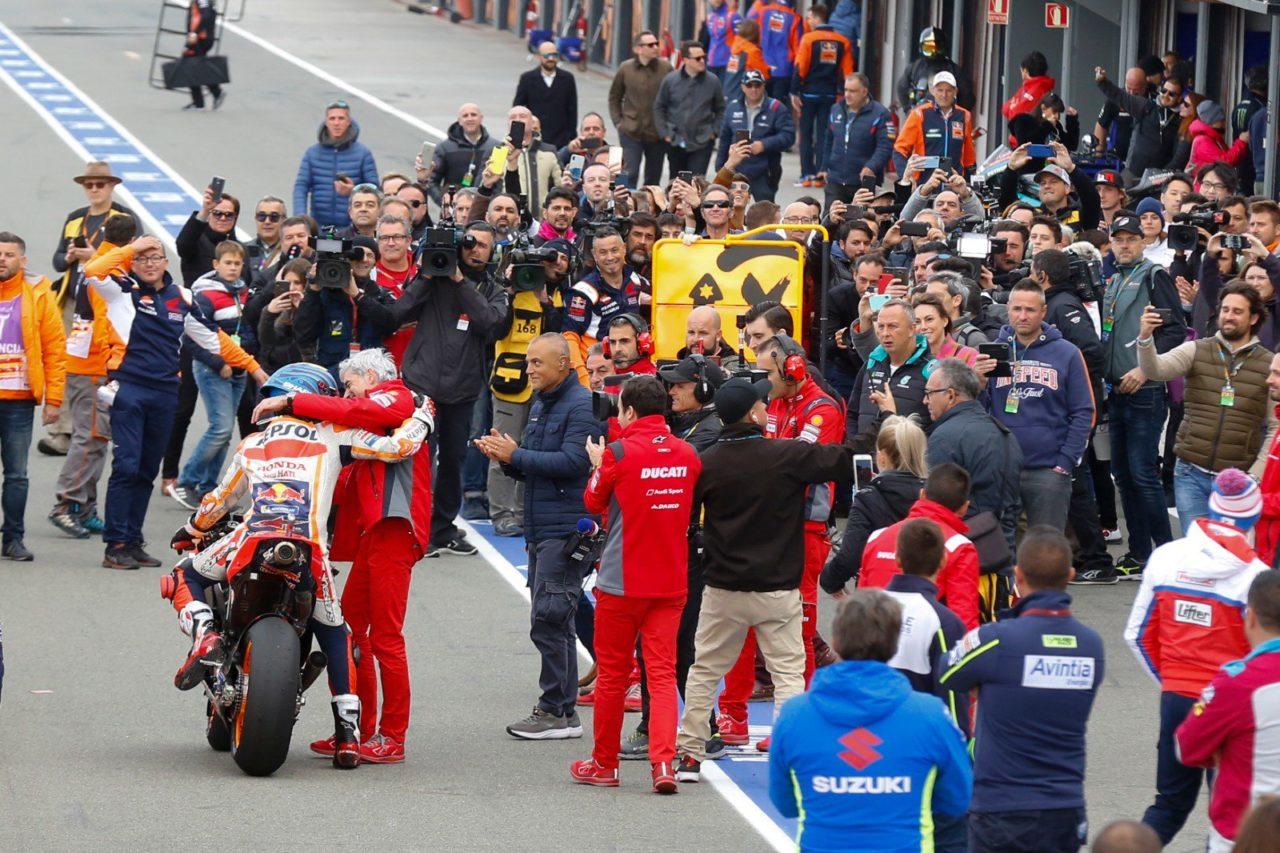 За последний год Даллинья трижды прощался с Лоренсо — после финала 2018 года, когда отпускал его в Repsol Honda, на прощальной пресс-конференции перед ГП Валенсии 2019, и после, когда испанец покинул MotoGP насовсем. После заезда по пути к своему гаражу Хорхе попал на пит-лейне в крепкие объятия Джиджи. Для шефа Ducati Corse это был грустный день, и не только потому что в Валенсии он проиграл командную битву Repsol Honda за первое место. Ему будет не хватать гонщика #99, который до сих пор наслаждается каникулами на острове Бали: